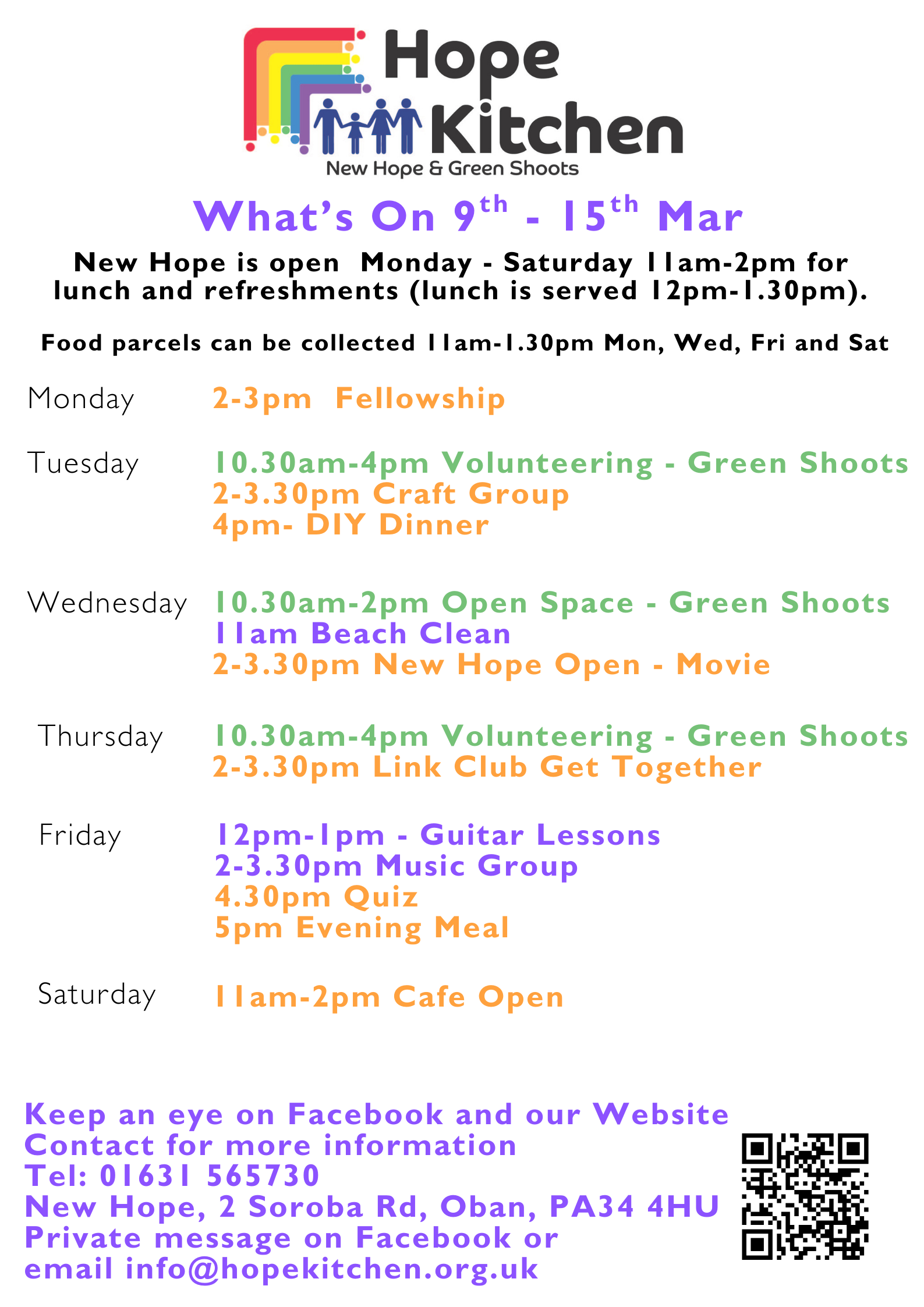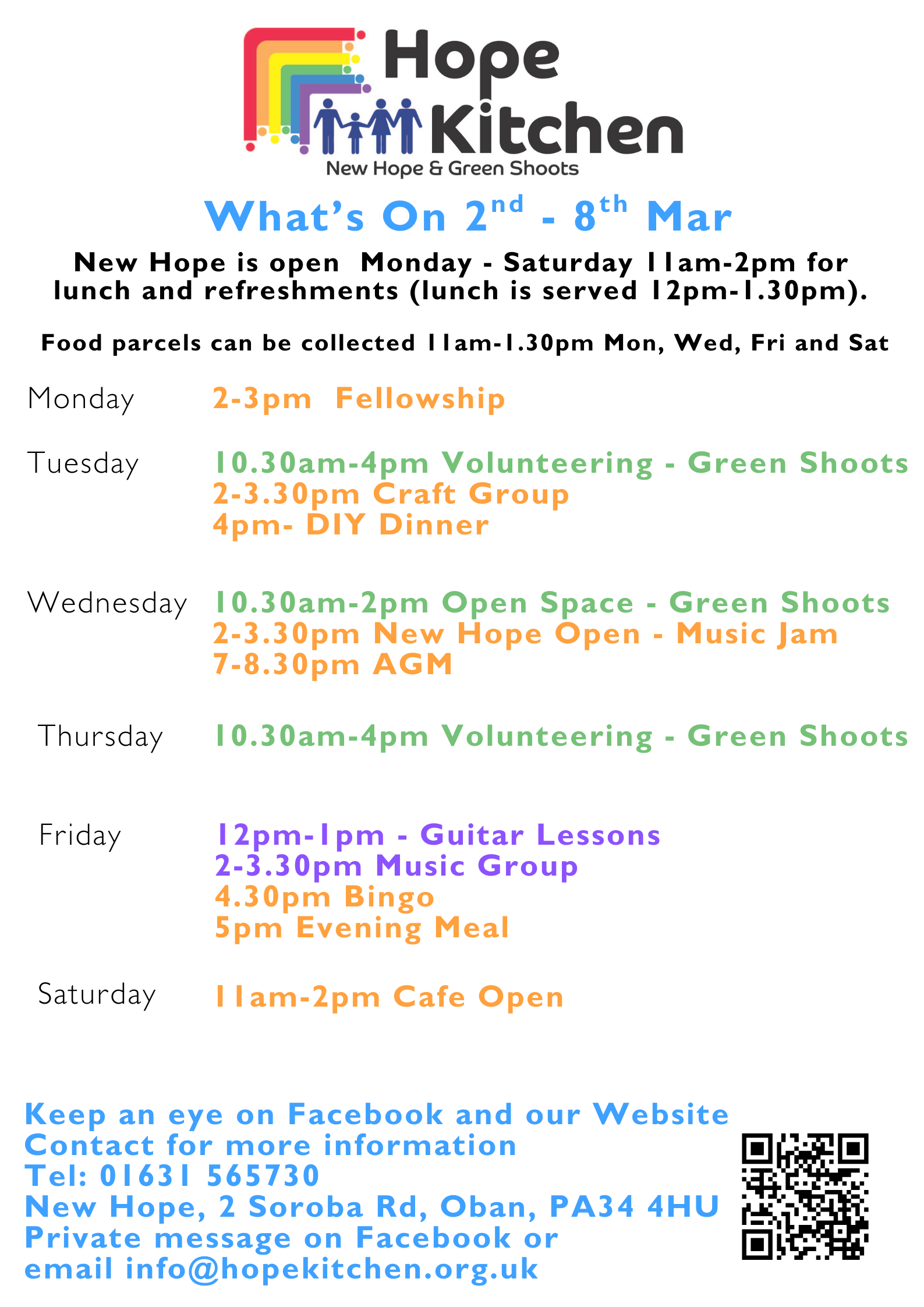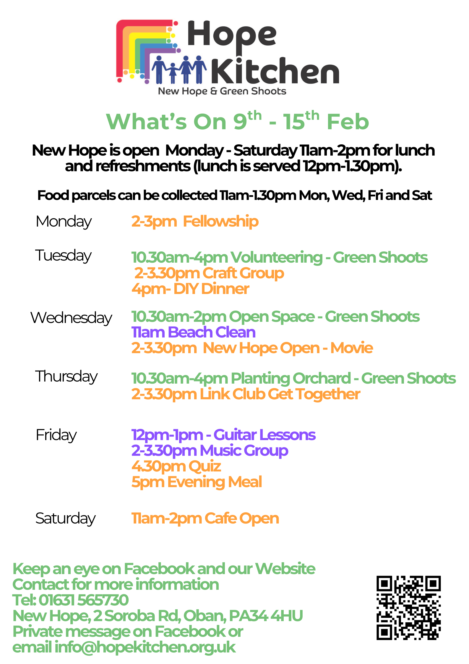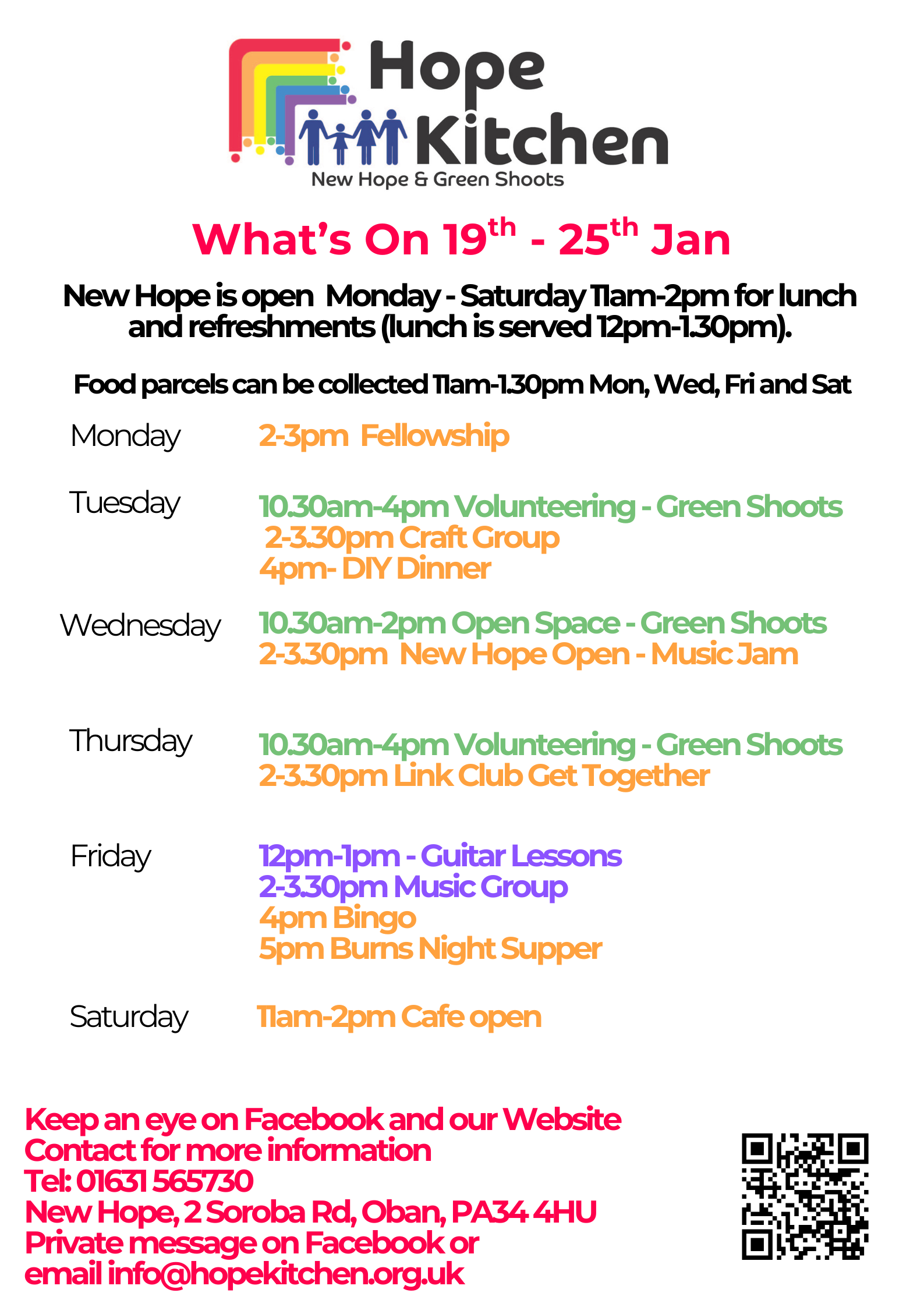 Hope Kitchen is a local charity that aims to serve Oban, Lorn and the Isles. Hope Kitchen comprises New Hope community Cafe, re_store community shop and Green Shoots Community garden.