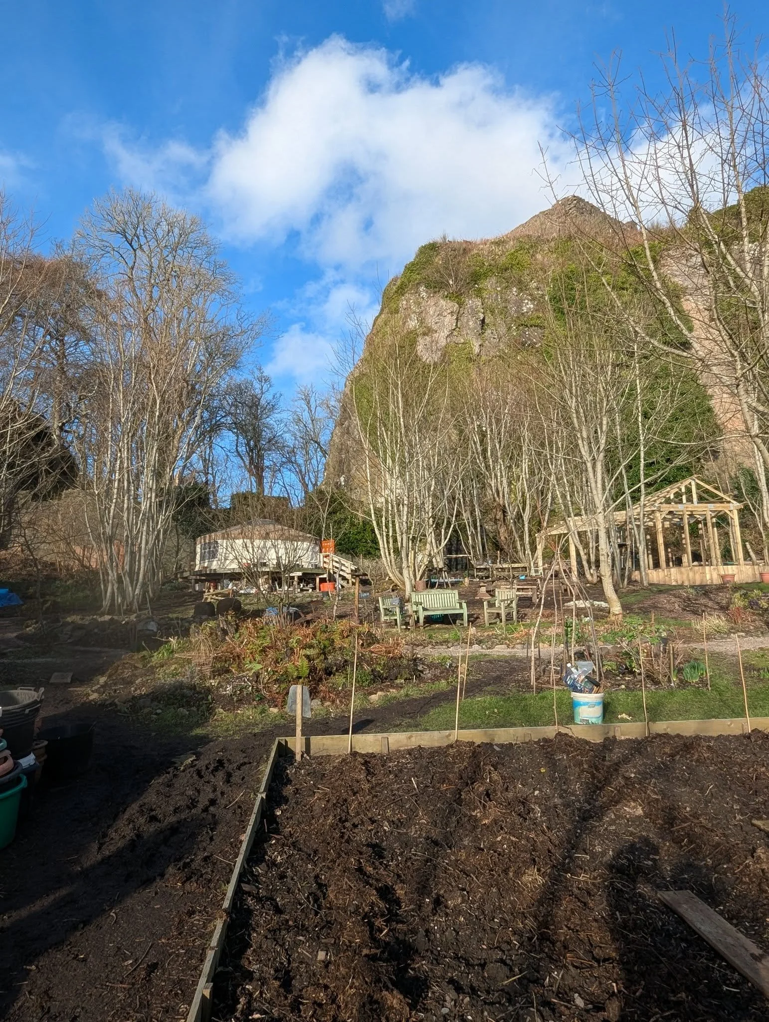It is based in the beautiful Dunollie Walled Garden. We have a yurt and we are currently building an outside cooking area. We welcome anyone to come and help grow fruit, vegetables and flowers, cook outdoors, develop wood working or other garden-based skills.